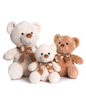 Velvet Bears with a contrast nose. Brown ribbon with cream spots. Suitable for clothing in sizes Small, Medium, and Large. Complies with EN71 European Toy Safety regulations. Remove all hang tags and their fasteners before giving these items to a child. Not suitable for children under the age of 36 months.