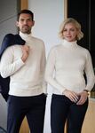 50% Merino Wool, 50% Cotton. Rollneck jumper, ribbed neck, cuff and hem.