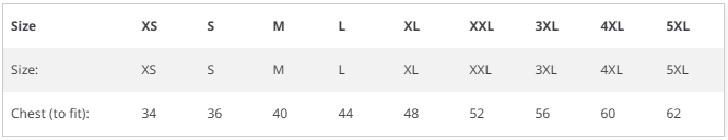 Chest (to fit) 36 40 44 48 52 56 60 62